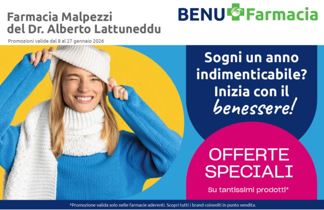 Promozioni valide dal 28 Gennaio al 24 Febbraio 2026: sfoglia il volantino Anche questo mese abbiamo il piacere di proporre le nostre offerte speciali. Tante opportunità per tutti, le nostre promozioni ti aspettano! SCARICA IL VOLANTINO OFFERTE LLOYDS Ti aspettiamo in Farmacia! Farmacia Malpezzi è sempre Benessere & Servizi a tutela della Tua salute
